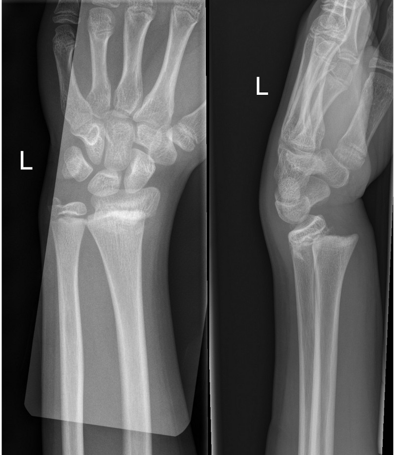 - Wrist splint with Orthopaedic Fracture clinic follow up in 7-10 days.
