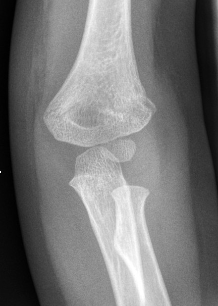 - Request an elbow X-ray (true lateral and AP views are required). This should include the distal third of the humerus and proximal third of the radius and ulna.