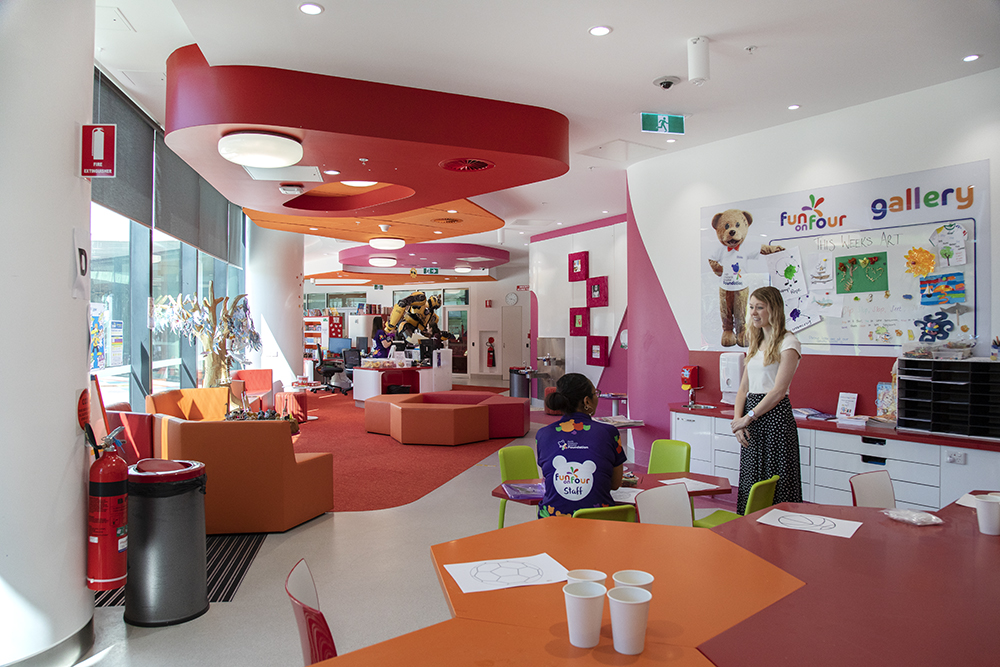 The Ronald McDonald Family Room in Fun on Four is a place for play and learning for kids and siblings and a comforting and uplifting area for parents and carers. It features a:
