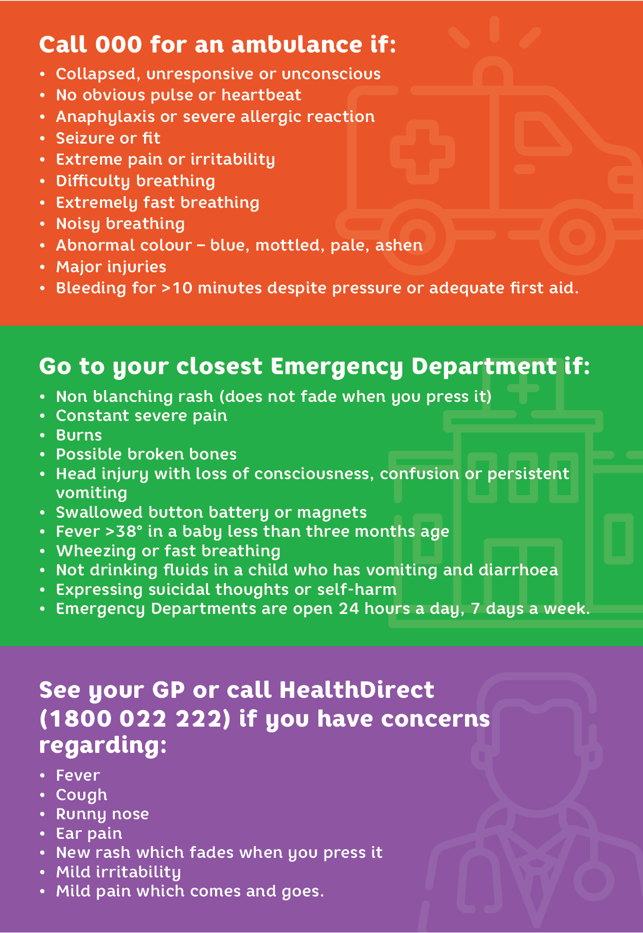 If your child has a life-threatening medical emergency or condition call 000 and ask for an ambulance.