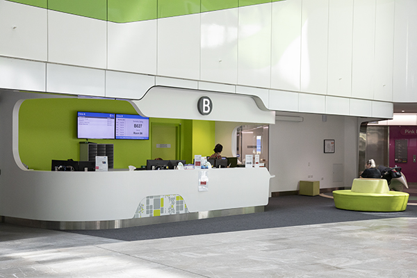 Checking in for an Outpatient appointment is like checking in for a flight at one of our self-check in kiosks. You will need your appointment letter or Medicare card. There are Volunteers available nearby to help you if you need.