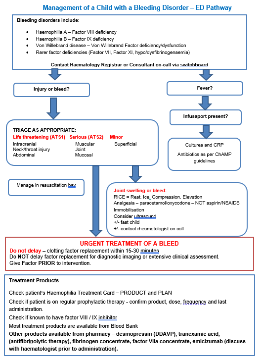 To guide Emergency Department (ED) staff with the management of a child with a known bleeding disorder.
