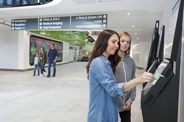 Checking in for an Outpatient appointment is like checking in for a flight at one of our self-check in kiosks. You will need your appointment letter or Medicare card. There are Volunteers available nearby to help you if you need.