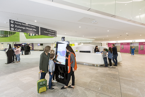 - Ground level: the main entrance (in front of the information desk), and the northern entrance (near Kulunga Moort Mia – the Aboriginal Family Lounge) and near Clinic C