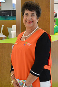 Our volunteers are easy to spot in their tangerine tops and are happy to help at any time.